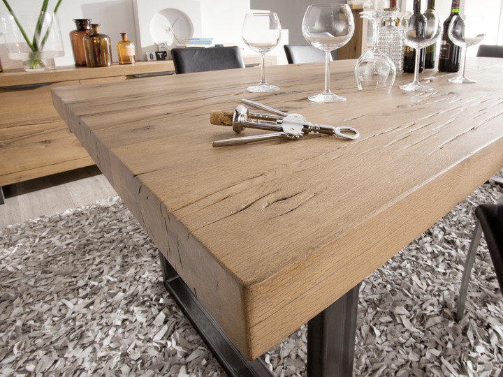 Esstisch Kansas Sumpfeiche Massiv Industrie Stahl Pick Up Mobel