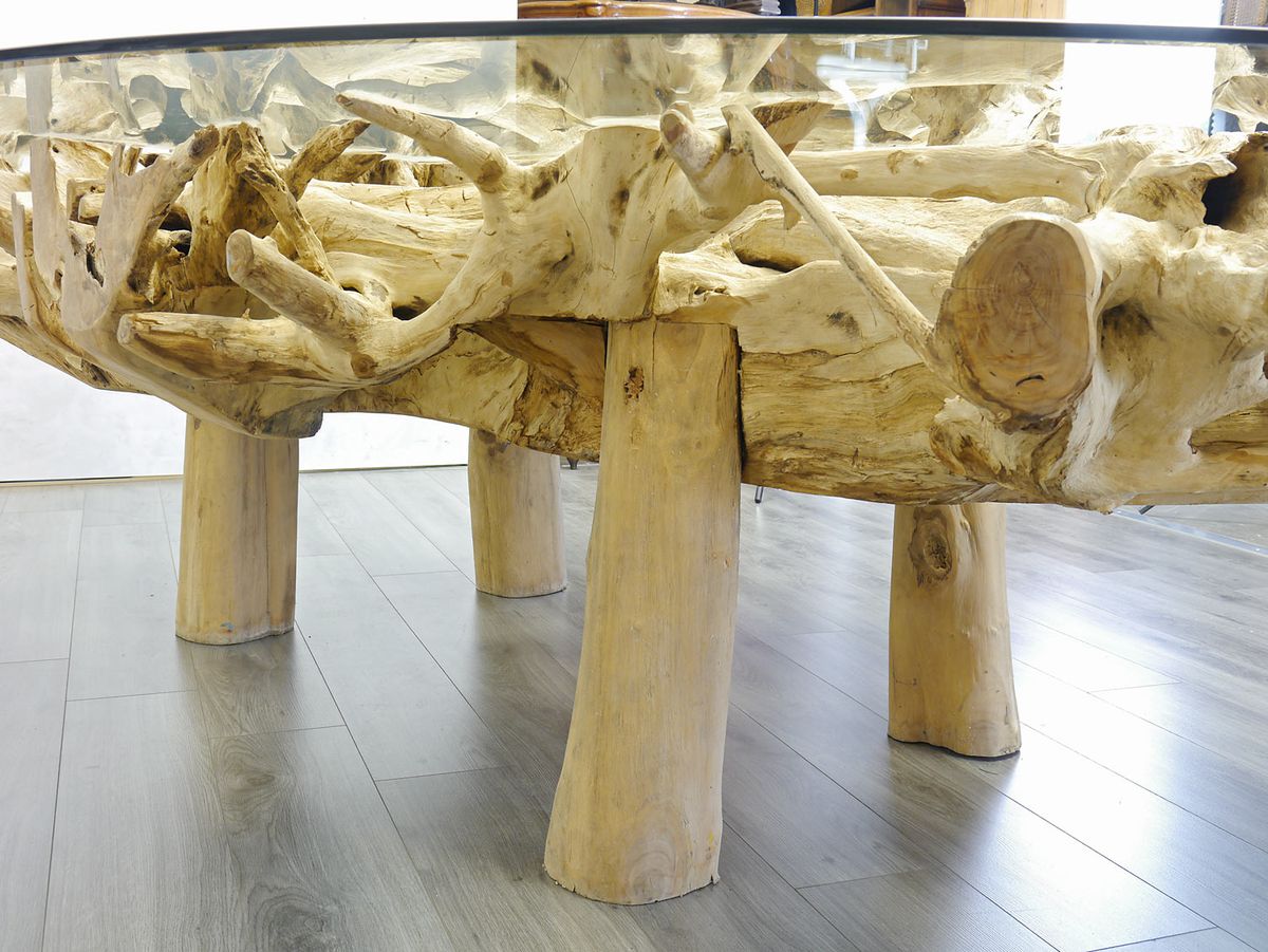Ovaler Esstisch Mit Glasscheibe Und Wurzelholz 300x200 Cm Antike