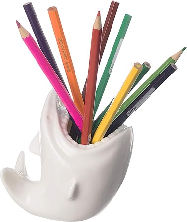 Comsaf Porzellan Haifisch Stifthalter Weiss Keramik Tisch