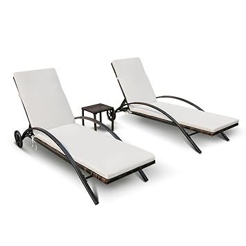 Ikayaa 3pcs Rattan Sonnenliege Gartenliege Camping Liege Mit Tisch